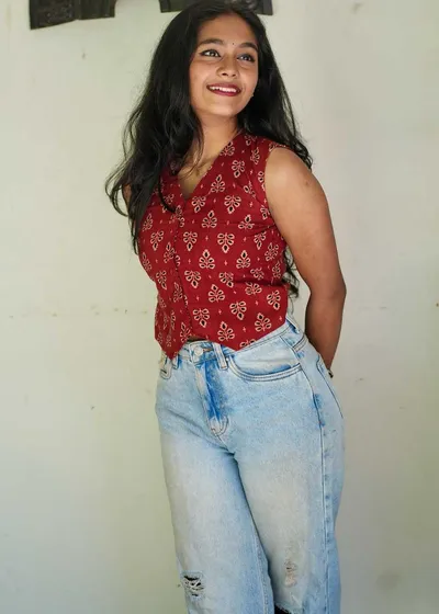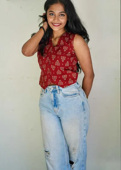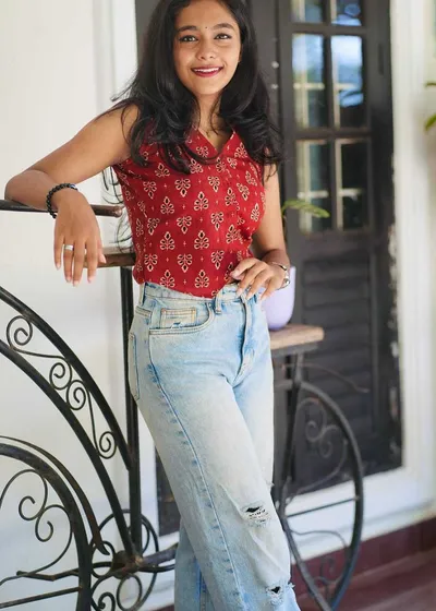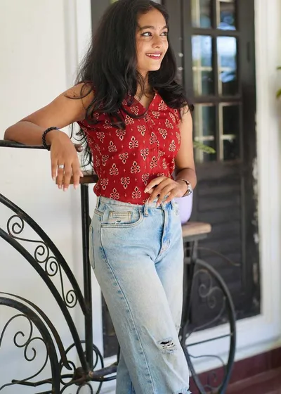 Stylish Sleeveless Top: Red printed design for a bright and trendy appearance